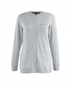 5 oz., 58% cotton, 39% modal, 3% spandex jersey; Soft modal blend drapes without clinging; Dyed-to-match grosgrain ribbon accents placket; Dura-Pearl buttons ideally spaced to avoid unflattering gaps; Banded rib knit cuffs and bottom hem; Longer 27" length (size medium) is ideal for wearing open or closed