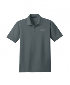 5.6-ounce, 60/40 cotton/poly. Includes double-needle stitching throughout. Flat knit collar and 3-button placket with dyed-to-match buttons. Features open hem sleeves and side vents.
